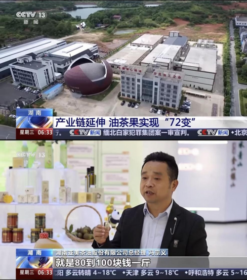 11月5日,央视新闻聚焦油茶产业“72变”,深度报道了亚美股份把油茶从果壳到果肉、从食用到深加工的全产业链价值升级,而亚美茶油正是这场产业变革的引领者。经过14年创新发展,亚美茶油掌握20多项专利技术,将传统茶油从单一食用油升级为多品类、高附加值产品矩阵,其中被国内外专家称为“脂肪炸弹”的第四代食用油甘油二酯油系列更是科技赋能的核心成果。