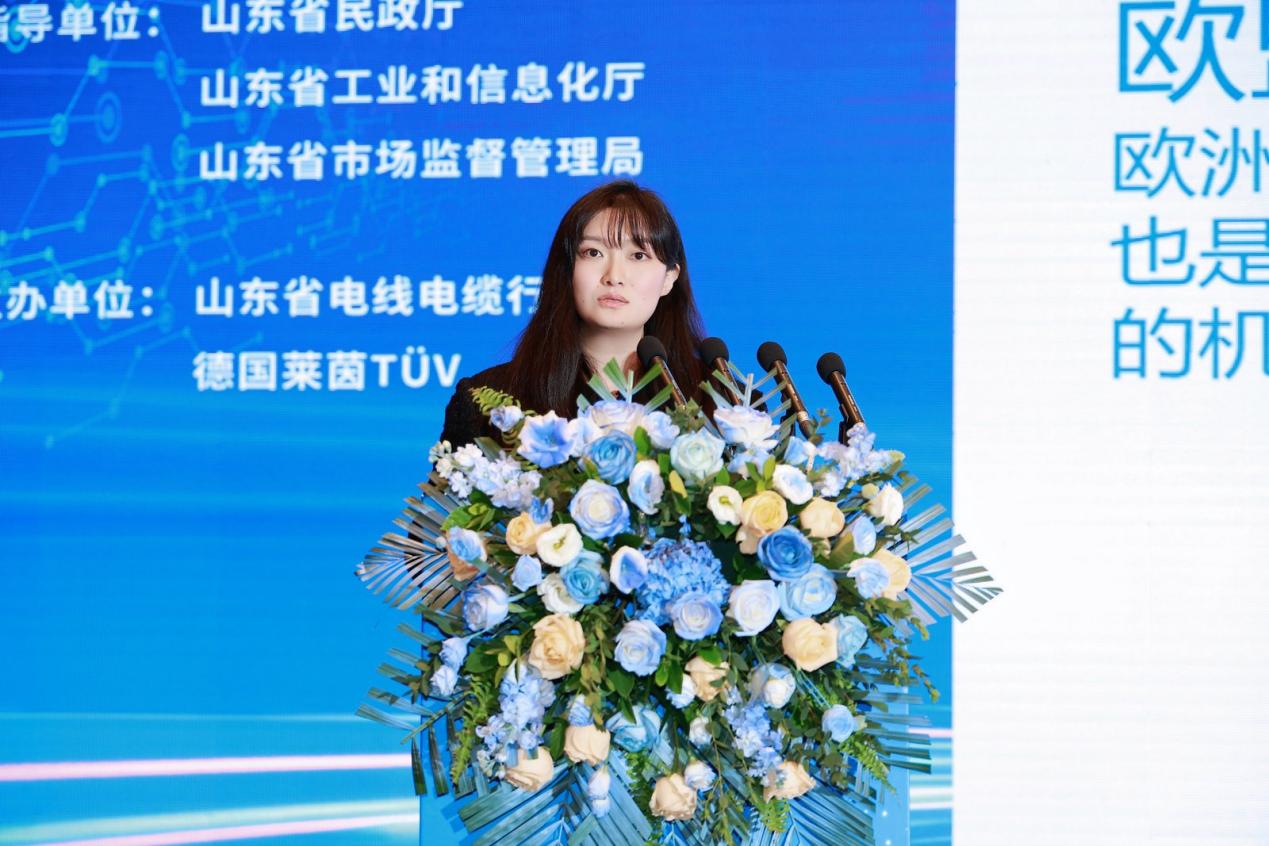 TÜV莱茵青岛公司执行董事王会波则从国际认证与标准互认的角度,为山东线缆企业出海支招,他表示将充分发挥TÜV莱茵的全球网络优势,助力山东线缆产品顺利进入国际市场。