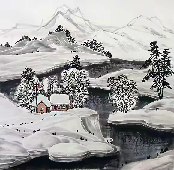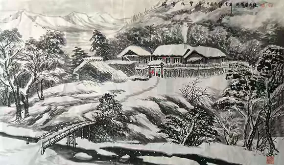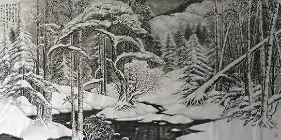 年过花甲的吴鸿鹏,仍以临池不辍的执着深耕冰雪画领域。他既是冰雪画派的忠实传承者,将师门技艺与美学理念发扬光大;更是积极的创新者,以独特技法拓展冰雪画的表现边界;亦是深情的守望者,用笔墨定格故土之美,传递人文温度。在他的画笔下,冰雪有魂,山水有韵,传统有根,创新有径。吴鸿鹏的艺术实践,不仅为当代冰雪画坛注入了持久活力,更向我们证明:唯有扎根传统、立足生活、勇于创新,才能让传统艺术在新时代焕发出永恒的魅力。