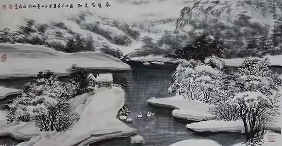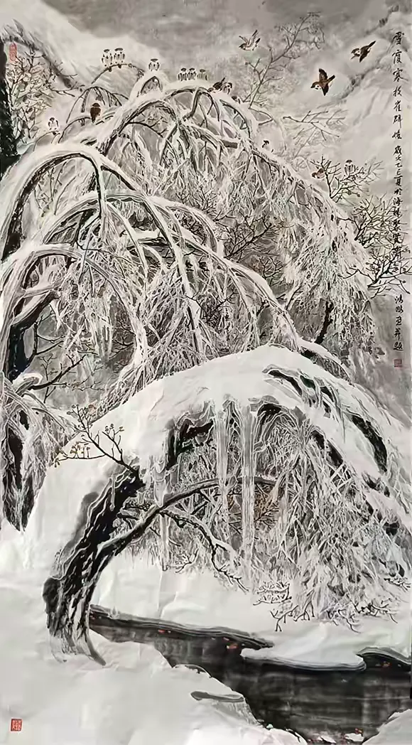 年过七旬的吴鸿鹏,依旧保持着临池不辍的创作热情与传道授业的赤诚。他以笔为媒,在冰雪世界中书写传统与创新的对话;以师为责,在教学相长中延续冰雪画派的文脉;以心为尺,在故土情怀中锚定艺术的初心。在他的画笔下,冰雪不再是凝固的风景,而是流动的文化基因、炽热的生命态度与深沉的家国情怀。吴鸿鹏的艺术之路,恰如他笔下的寒梅傲雪,历经岁月磨砺而愈发芬芳,也为当代传统艺术的传承与发展,提供了 “扎根传统、立足生活、勤于创新、乐于传承” 的生动范本。