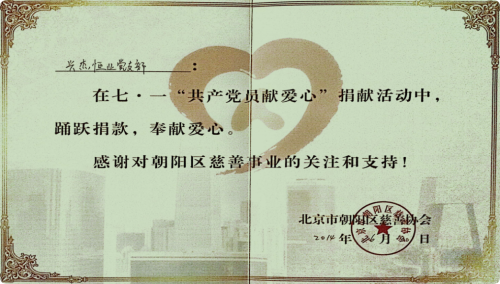 (“共产党员献爱心”荣誉证书)